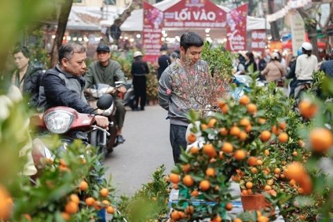 Xe biển xanh buộc cành đào che biển số bị phạt 23 triệu đồng