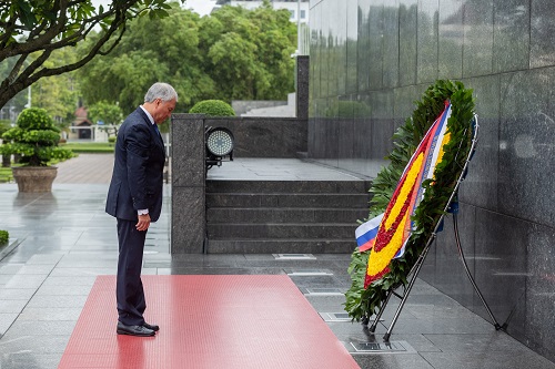 Trước đó, trong khuôn khổ chuyến thăm, ngay sau khi đến Thủ đô Hà Nội, Chủ tịch Duma Quốc gia Quốc hội Liên bang Nga Vyacheslav Volodin và Đoàn đại biểu cấp cao Liên bang Nga đã đặt vòng hoa tại Đài tưởng niệm các Anh hùng Liệt sĩ và vào Lăng viếng Chủ tịch Hồ Chí Minh