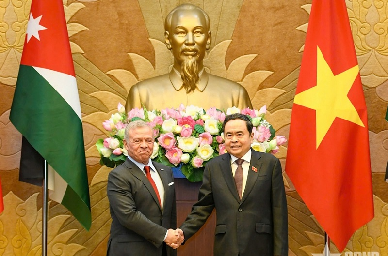 Chủ tịch Quốc hội đánh giá cao những nỗ lực của Jordan trong việc thúc đẩy hòa bình, ổn định và phát triển ở Trung Đông, cũng như vai trò lãnh đạo của Quốc vương Jordan trong thúc đẩy các giá trị nhân văn, công bằng xã hội và an ninh lương thực toàn cầu.