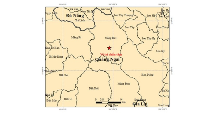 Động đất có độ lớn 3.7 tại Măng Bút, Quảng Ngãi