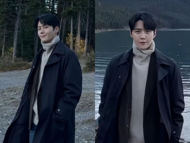 Trong những bức ảnh, Kim diện một bộ trang phục từ chương trình gồm một chiếc áo khoác dài màu tối khoác ngoài áo len cổ lọ màu be, tạo nên vẻ ngoài kín đáo nhưng tinh tế. Kiểu dáng rộng rãi, bay bổng của áo khoác mang đến vẻ thanh lịch tự nhiên, trong khi chiếc áo len cổ lọ đơn giản tạo sự cân bằng và cấu trúc, tạo nên phong cách mùa đông cổ điển đầy chủ ý.