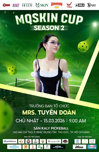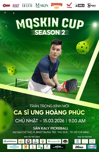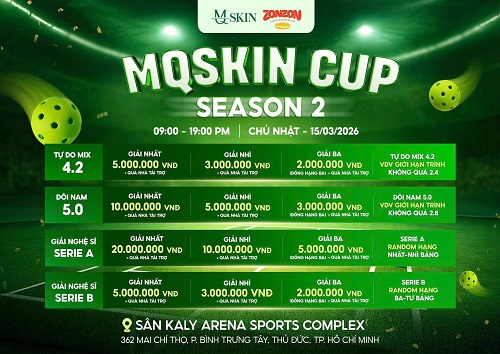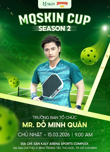 05:02, 11/03/2026MQSKIN Cup – Season 2 chính thức khởi động với sự tham gia của nhiều nghệ sĩ tên tuổi, niều doanh nhân, thương hiệu lớn, hứa hẹn sẽ trở thành một trong những giải đấu về Pickleball đi đầu và ghi dấu ấn mạnh mẽ trong giới yêu thể thao cũng như người hâm mộ Việt Nam